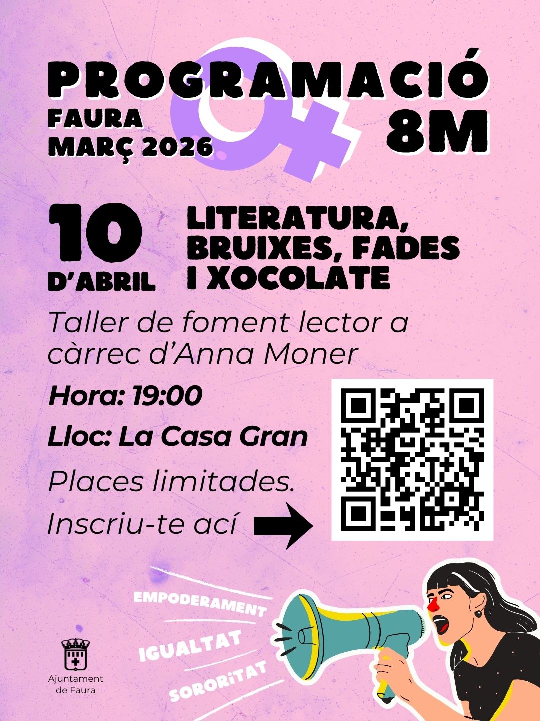 Amb aquesta proposta, que compta amb places limitades i requereix inscripció prèvia, l’Ajuntament de Faura continua ampliant i enriquint la programació al voltant del Dia de la Dona, estenent-la també durant el mes d’abril amb activitats que combinen cultura, reflexió i participació ciutadana. El calendari culminarà el pròxim 26 d’abril amb un concert a càrrec de Patraix Clarinet Quartet, posant el punt final a una agenda que reafirma el compromís municipal amb la igualtat de manera transversal i sostinguda en el temps.